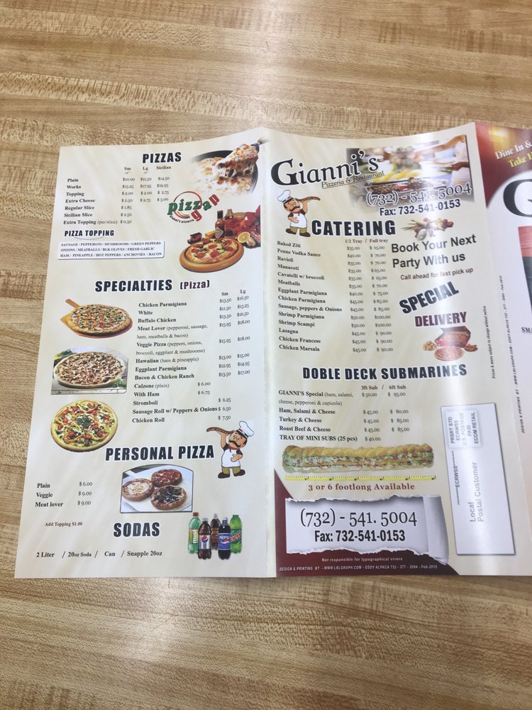 Gianni’s Pizzeria Menu